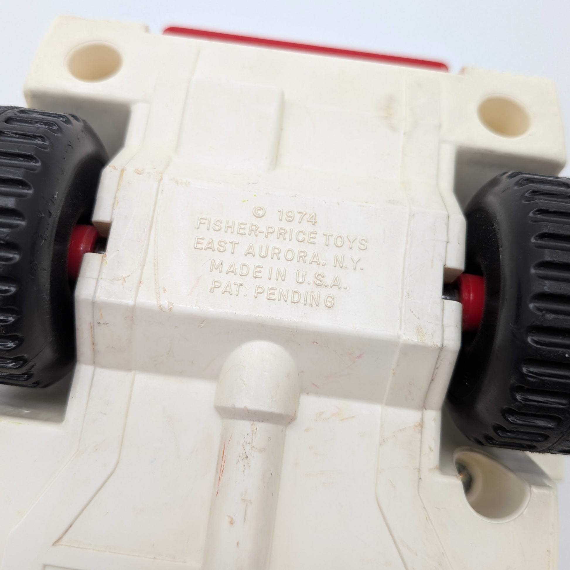 Bring home a classic piece of Fisher-Price history with the Vintage Adventure People Emergency Rescue Truck #303. Released in 1975 as part of the groundbreaking Adventure Series, this 5-piece rescue set was designed to grow with kids beyond preschool. The white utility rescue truck features a fold-out side panel, swiveling boom base, and rugged wheels ready for any pretend emergency. It also includes two red ladder attachments, a rolling green stretcher, and a green oxygen tank, making it a complete set.
