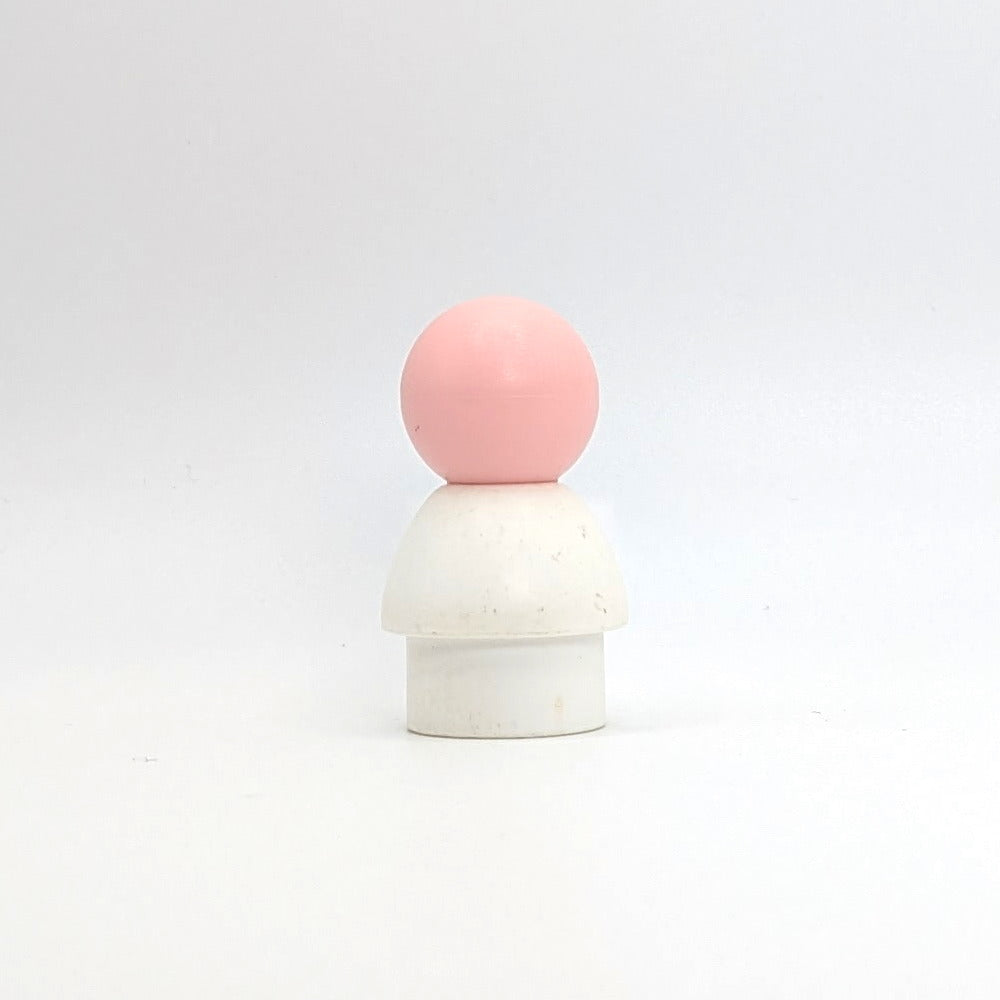 This vintage plastic Fisher-Price Little People baby figure features a white body and a small curl of stamped hair on the forehead. Simple and sweet in design, this version was used exclusively in the #931 Hospital set. A nostalgic piece that adds charm to any retro imagination toy collection.