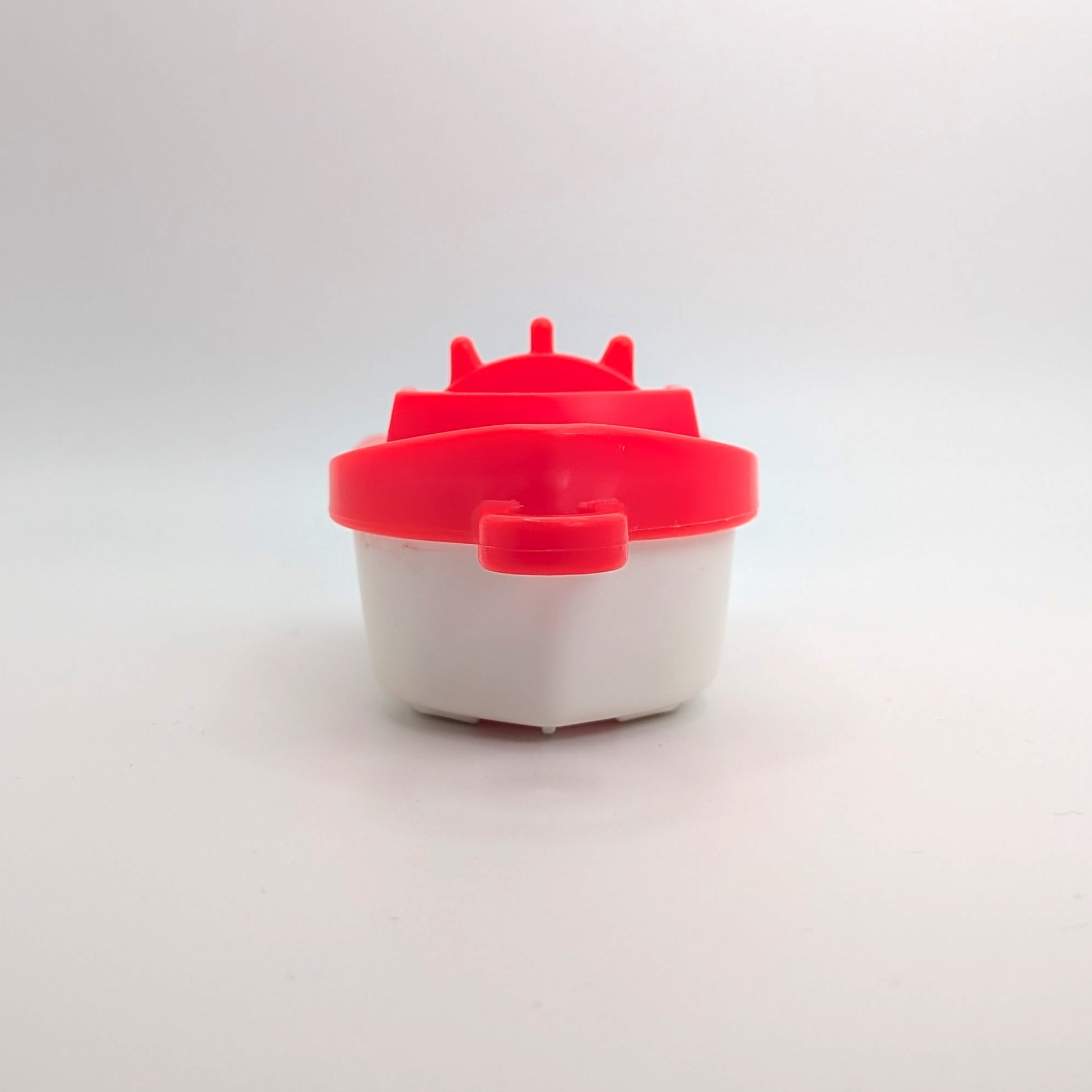 This vintage Fisher-Price Original Little People Boat is an authentic accessory from the #2582 Floating Marina set. It features a red top with a white base, a single seat with a molded steering wheel, and a small “deck” area around the seat. The front of the boat has an enclosed hole that attaches to the marina dock peg, while the back includes an upright peg for lifting with the Floating Marina’s boat lift. A perfect piece for completing your Floating Marina set or adding a nostalgic touch to your vintage Fisher-Price Little People collection.