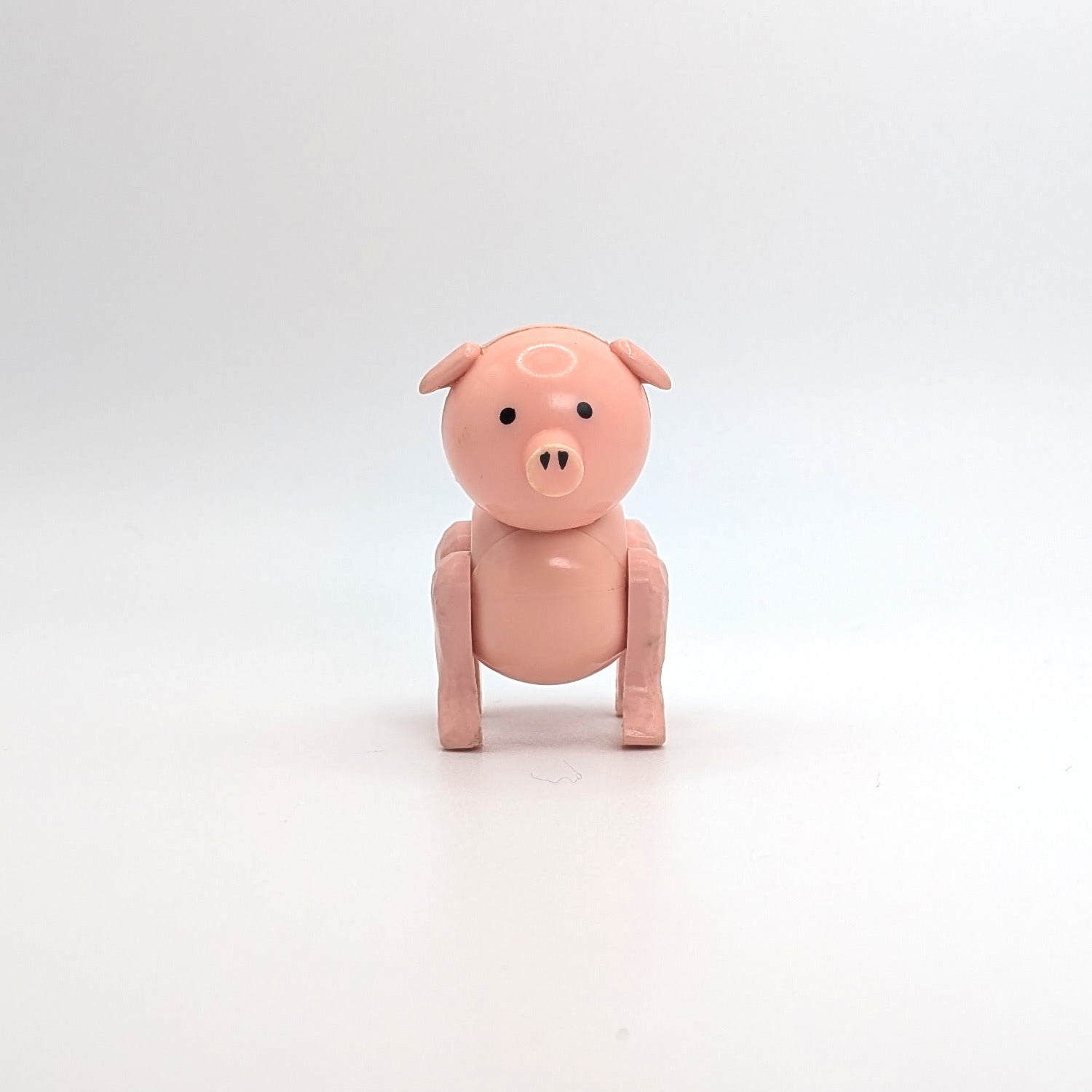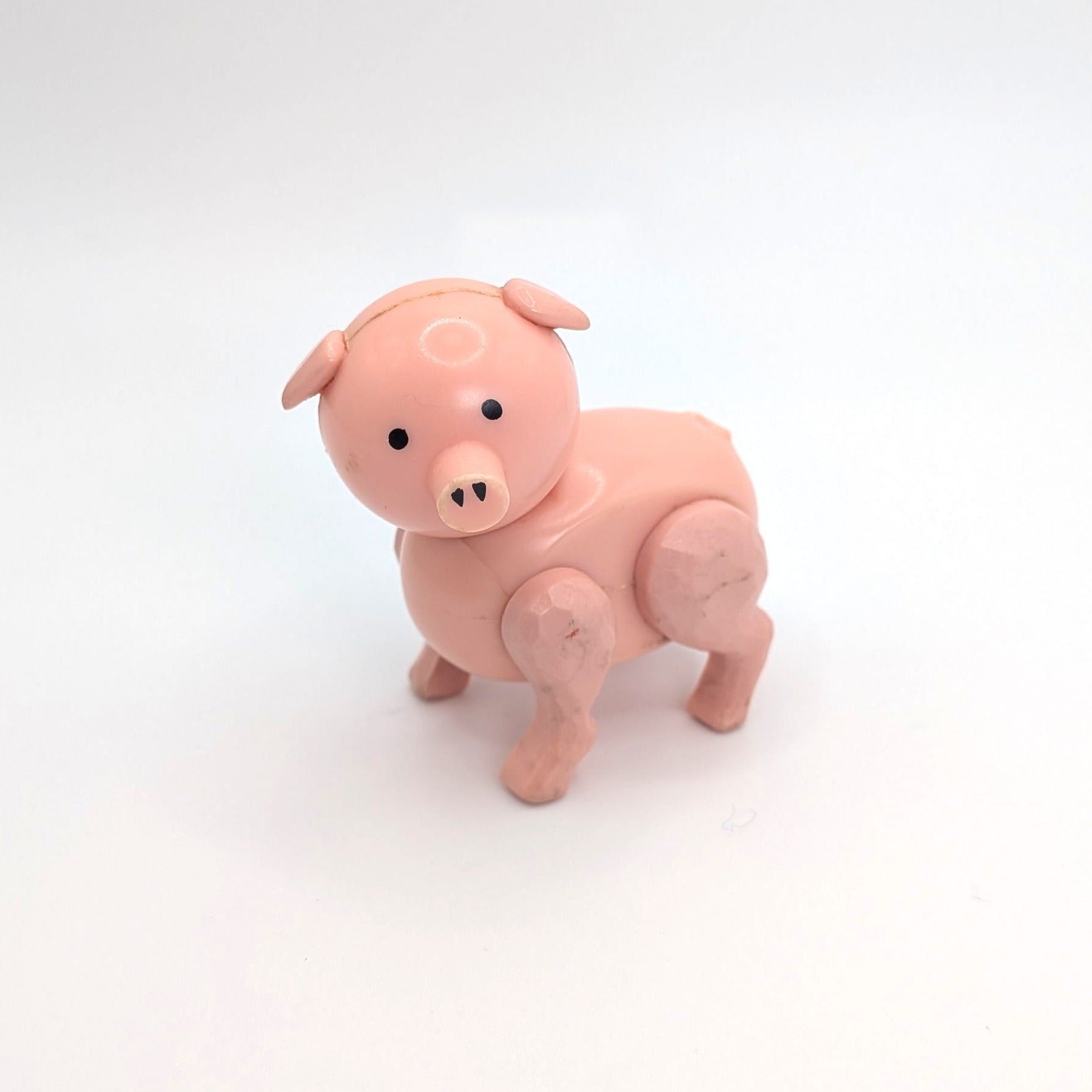 This cheerful pink pig adds a charming touch to any vintage Fisher-Price Little People farm scene. Designed with poseable legs and a movable head, it's a sweet addition to sets like the #915 Farm and a favorite among collectors for its classic, old-fashioned appeal.