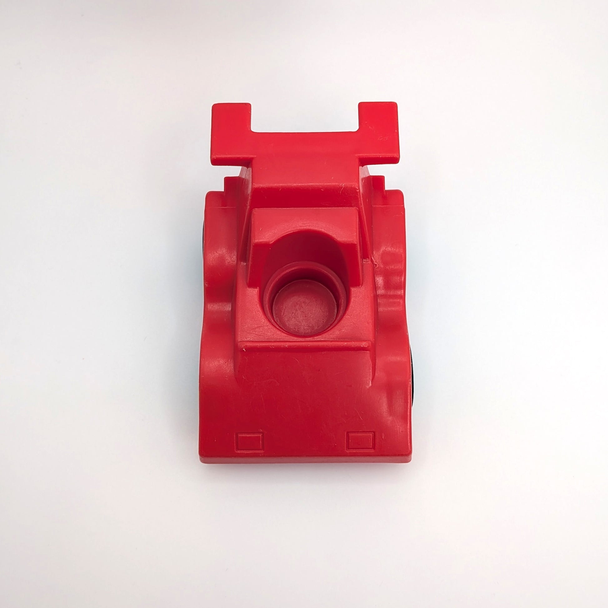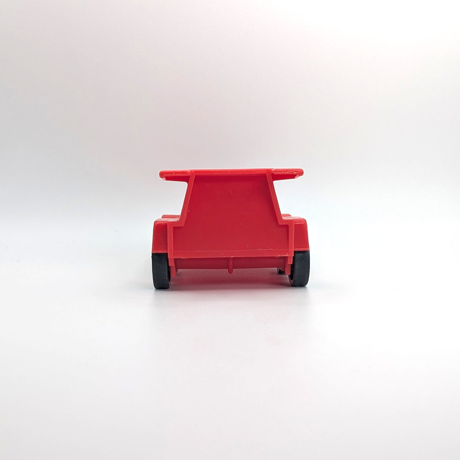 Bring high-speed fun to your vintage Little People collection with this red single-seat race car, an original accessory from the Fisher-Price Original Little People line. Designed with a high backrest and rear spoiler, this compact racer rolls smoothly on four black plastic wheels secured with metal rivets for classic durability. Used across multiple sets including the Indy Racer Set #347 and other Little People assortments, this car is a great replacement or addition for collectors looking to complete their racing-themed playsets.
