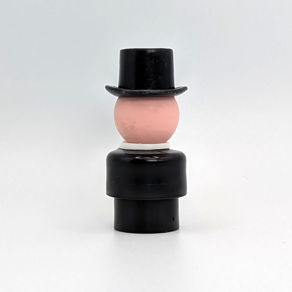 This short plastic Little People figure features a black body, thin mustache, black top hat, and a white bib-style collar across his chest. He appeared in the #991 Circus Train set as the ringmaster, leading the show with classic style. A fun and recognizable figure to complete your vintage Fisher-Price circus set.