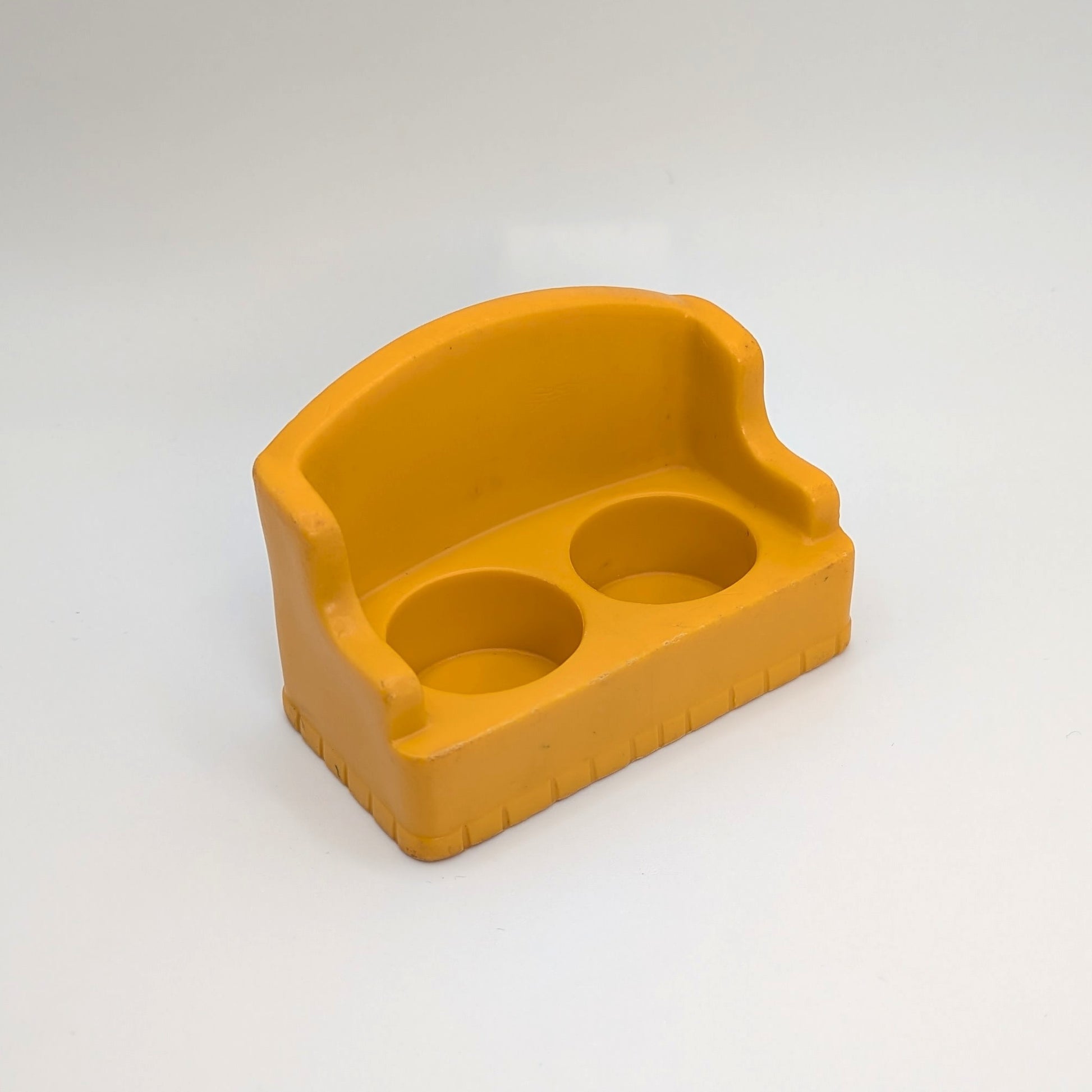 Add a cozy touch to your vintage Little People home scene with this gold (butterscotch) two-seat stuffed sofa, an original accessory from the Fisher-Price Original Little People line. Designed to resemble a cushioned couch, this classic piece brings warm color and comfort to playroom and living room setups. It fits the Play Family Sesame Street Playset #938Â and is a great replacement or addition for collectors looking to complete their vintage Sesame Street scene.