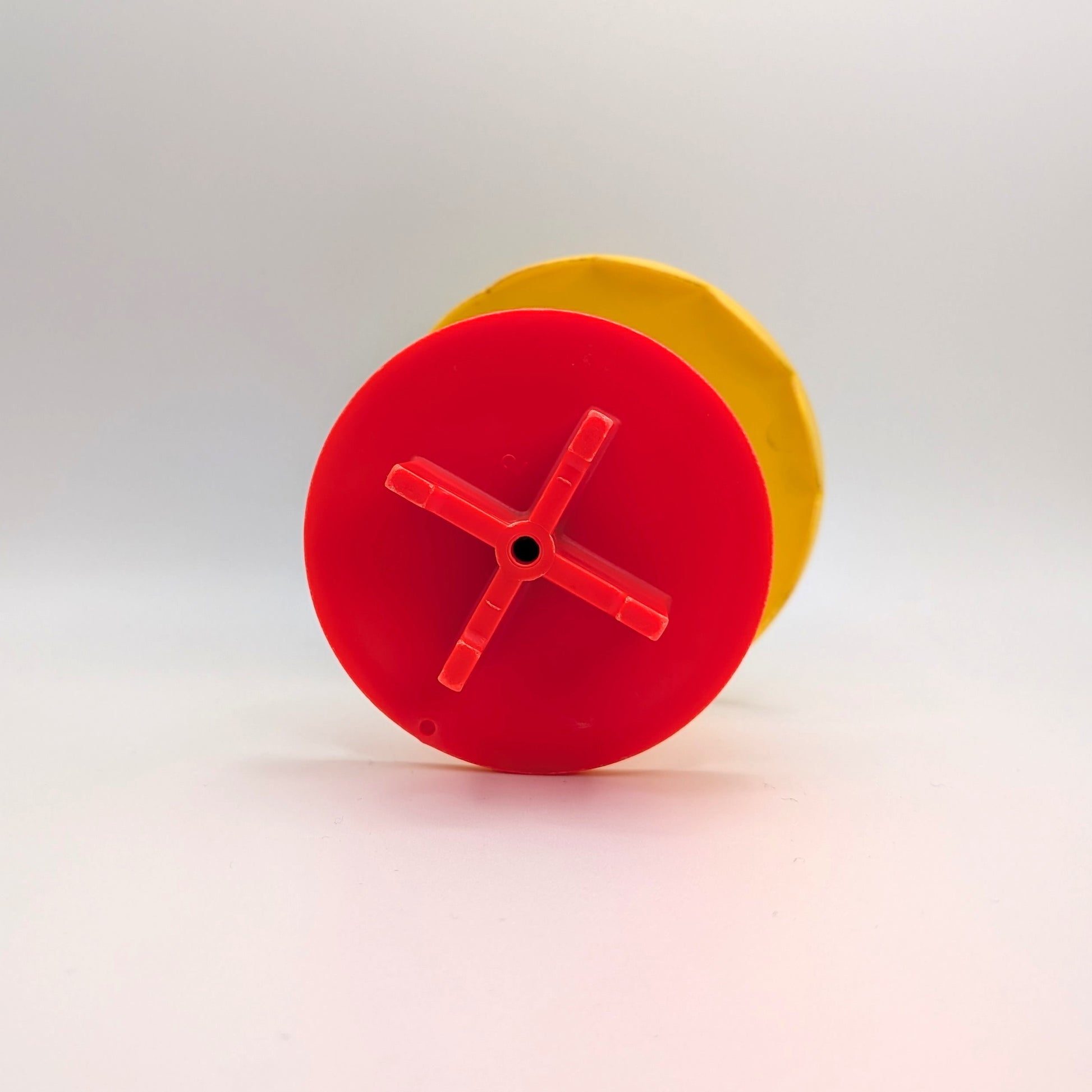 Add a splash of retro color to your Fisher-Price camper scene with this orange round table featuring a yellow spring-mounted umbrella. Designed with sturdy criss-cross X style legs, this fun picnic-style table came with the #994 Play Family Camper set and brings classic outdoor charm to your vintage Little People collection.