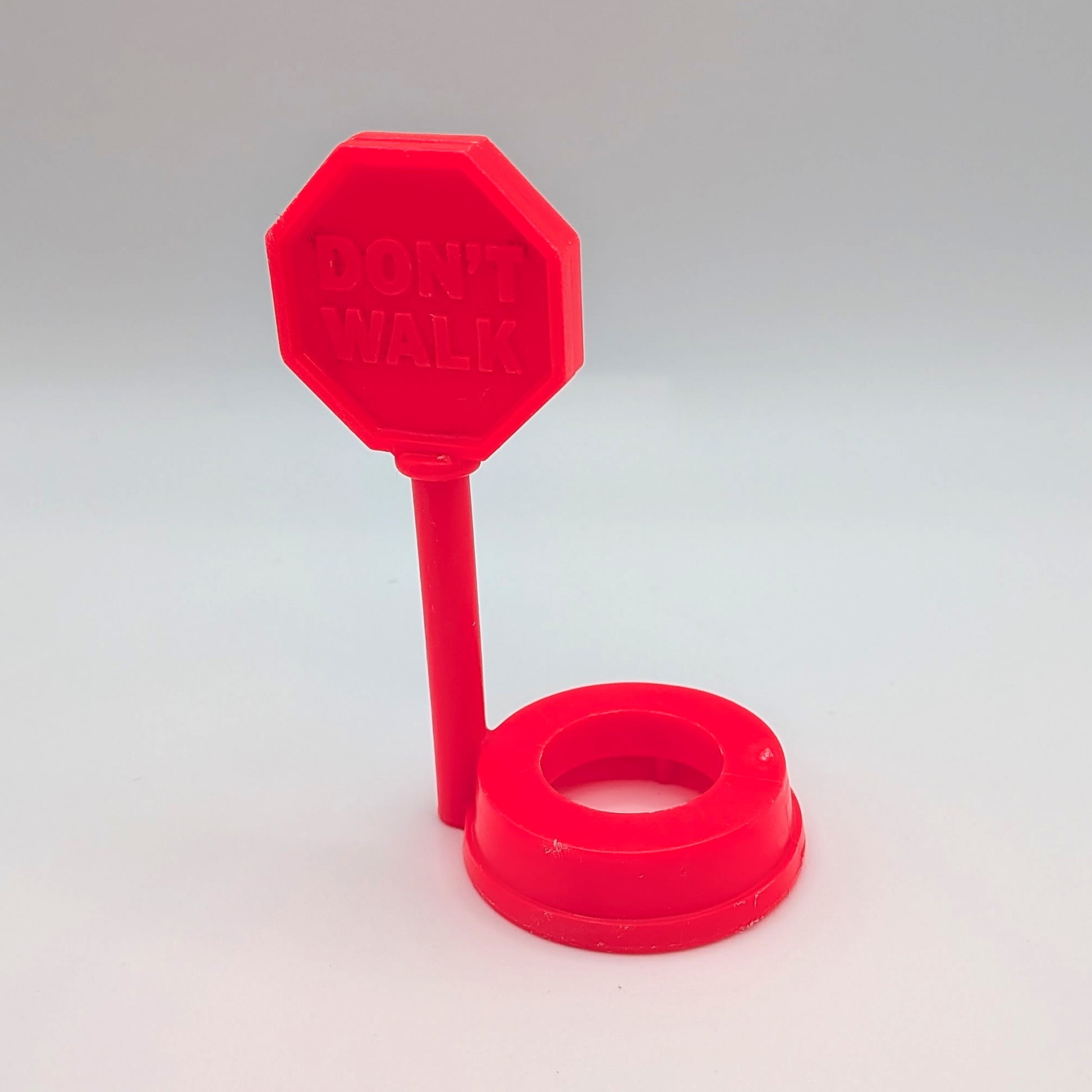 Red octagon sign with “WALK” on one side and “DON’T WALK” on the other. Features a round base with a slot designed to hold a Little People figure. Originally part of the #2550 Little People School set (1988–1990). A fun accessory to complete your vintage collection.
