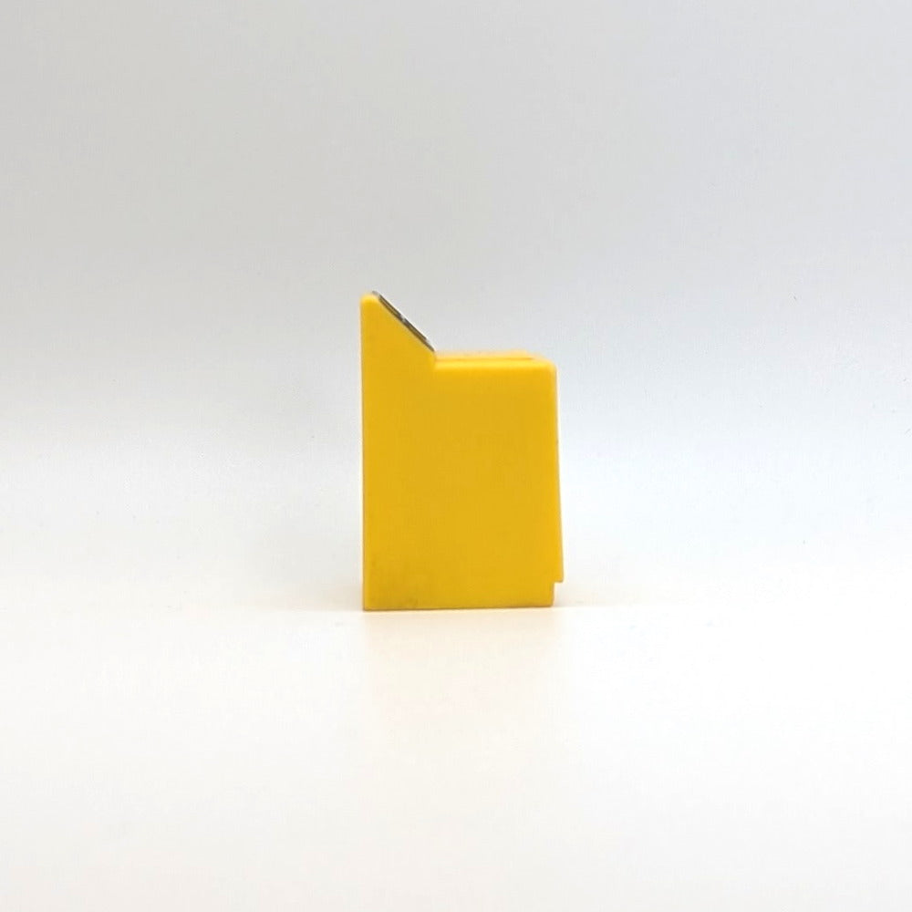 This vintage yellow washing machine from the Fisher-Price Little People line is styled with an indented lid and classic black-outlined dial for a charming retro look. Made to resemble an old-fashioned clothes washer, it was part of the #725 Play Family House Bath/Utility Room set. A fun utility room detail to spark happy memories and complete your nostalgic Fisher-Price home.
