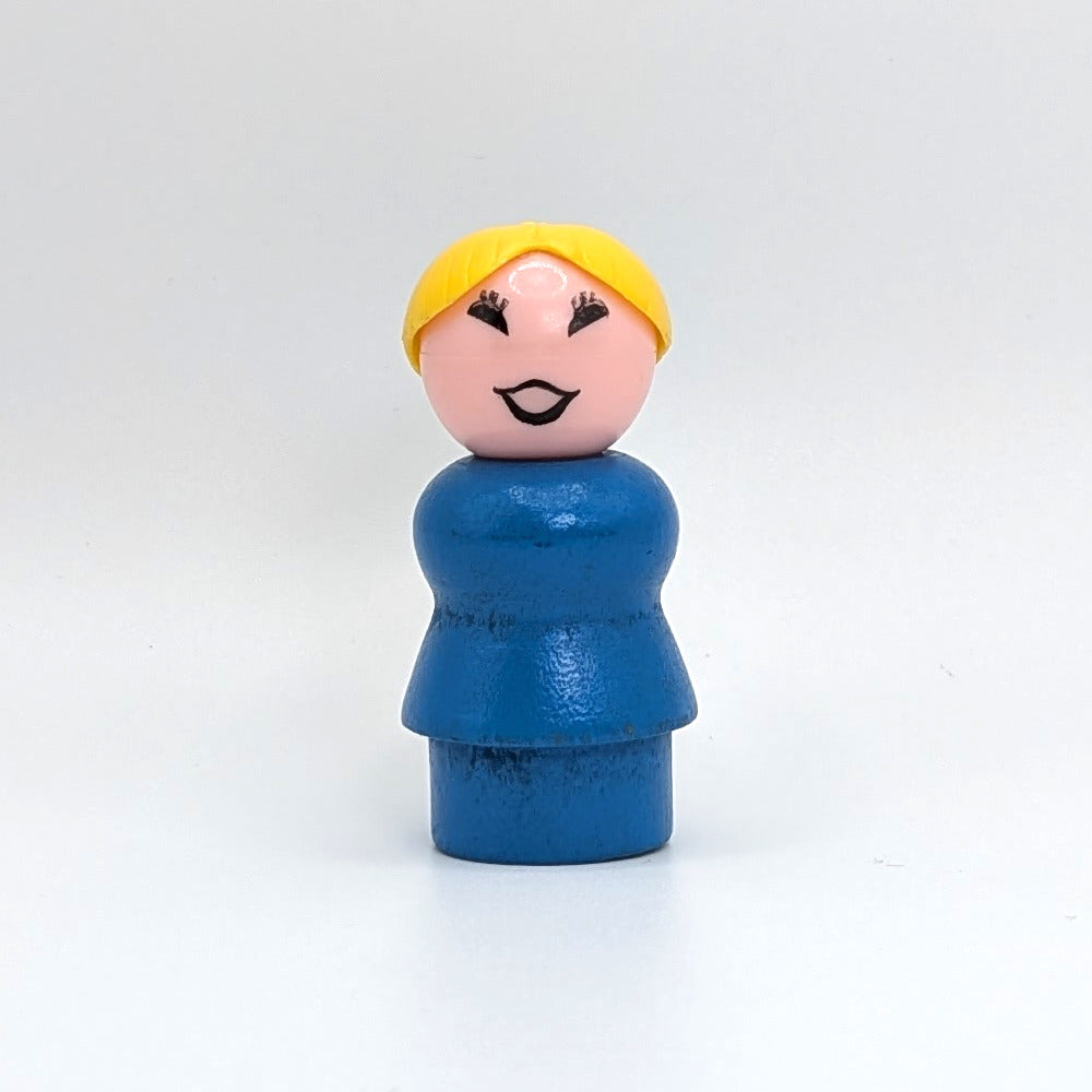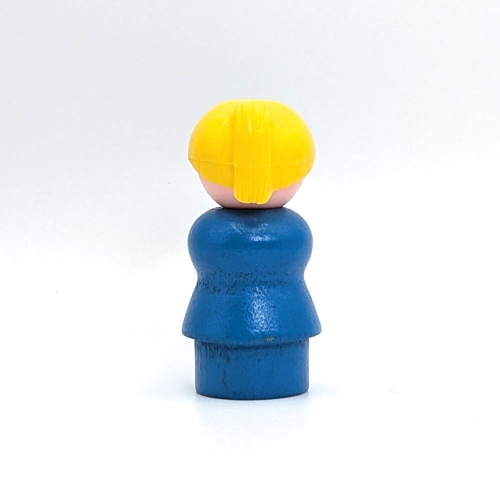 Woman - Blue Wood Body | Plastic Head | Slanted Eyes - Fisher Price Little People