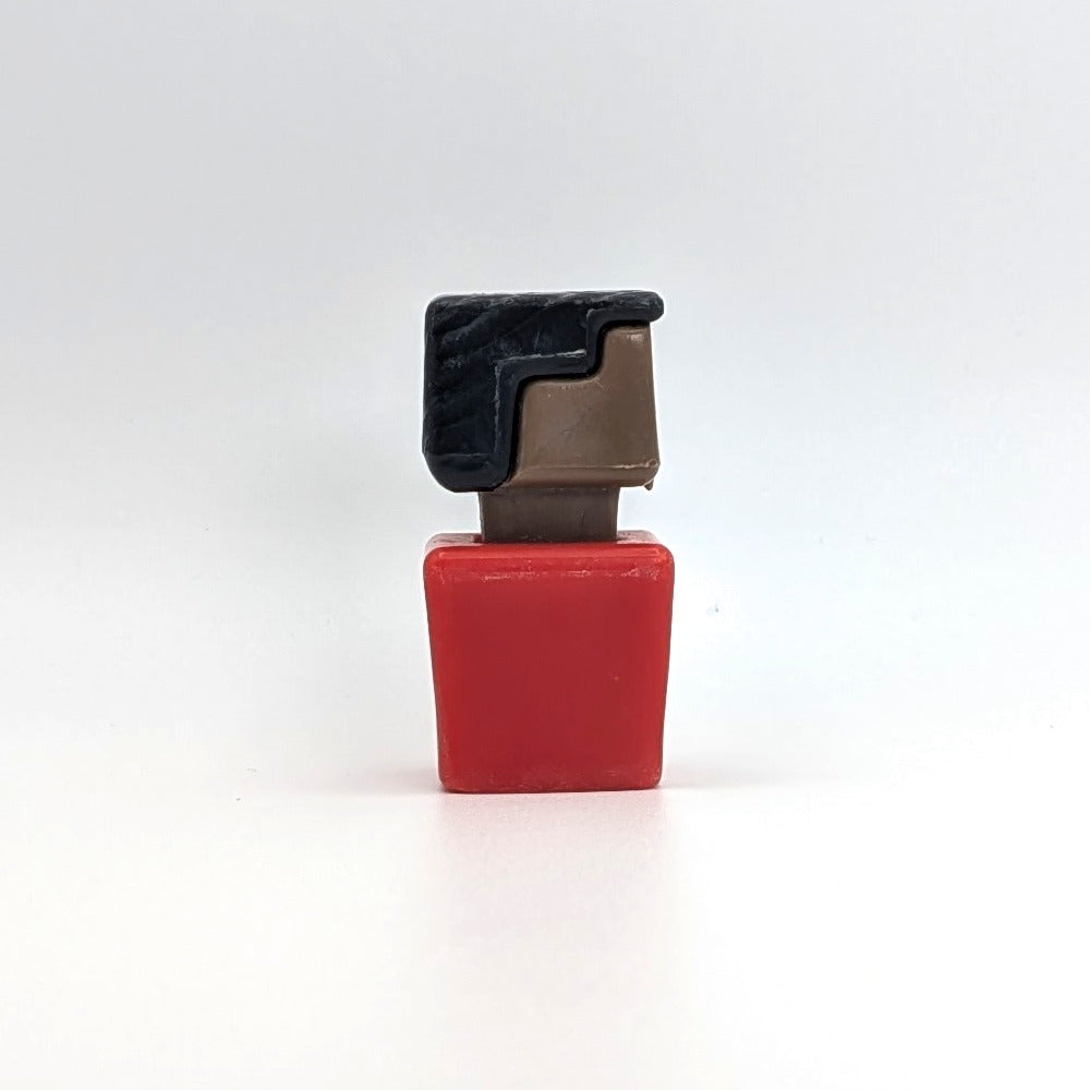 This vintage Playskool Familiar Places figure features a red body with a triangle collar and polka-dot tie, paired with black hair, bold eyebrows, and a wide smile. Designed with a distinctive chin peg, this African-American character was originally included in the #430 McDonald’s playset as well as the Forest Ranger and National Park sets. A rare and sought-after piece, it’s perfect for collectors looking to complete or restore their vintage Playskool collections.