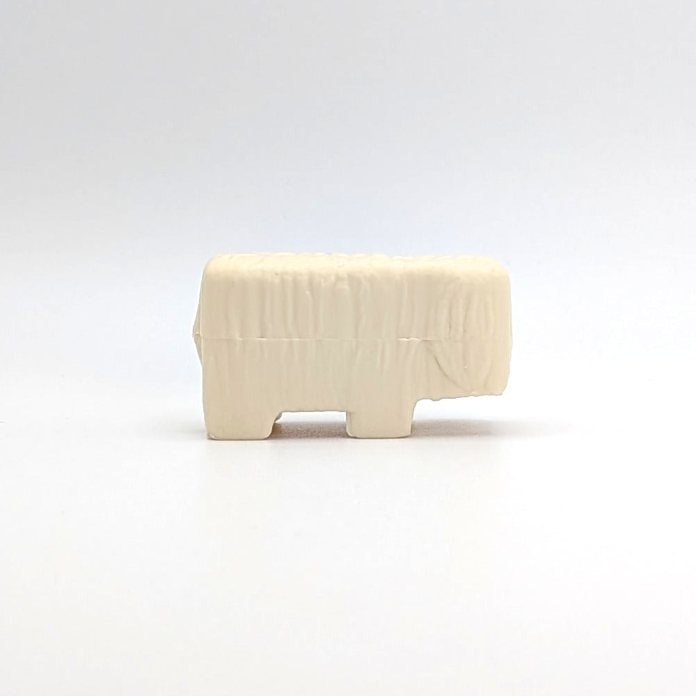 This vintage Playskool Familiar Places dog figure features a white rectangular body with molded long hair and four short square legs. Sized to match the familiar people figures, this charming pup was originally included in the #480 Holiday Inn playset. Hard to find, it’s a must-have for collectors looking to complete their set or add a rare piece of 1970s Playskool nostalgia to their collection.